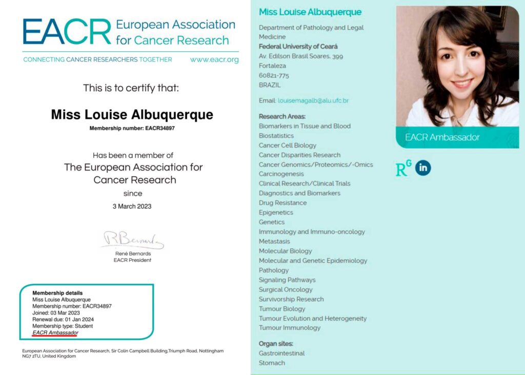 Nossa ligação com a EACR (European Association for Cancer Research) é uma fonte de grande inspiração e motivação para nós. Trabalhamos em estreita colaboração com profissionais que são embaixadores dedicados dessa prestigiosa associação. Essa parceria não apenas nos permite manter um padrão de excelência em nossos serviços, mas também nos conecta com uma rede global de especialistas comprometidos com o avanço da pesquisa e tratamento do câncer.